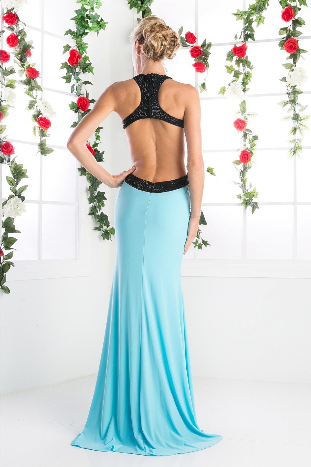 - Style: Halter Neckline, Sheath Silhouette, Long, Open Back