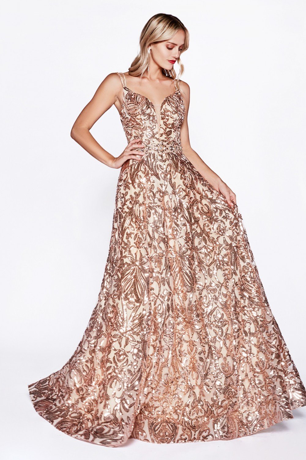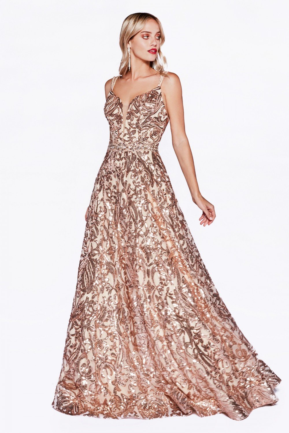 Sequined V-Neck A-Line Sleeveless Evening Dress CDCR842