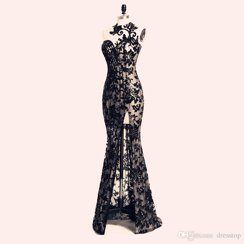 Elegant Beading Split Evening Dresses ,High Neck Mermaid Sequins